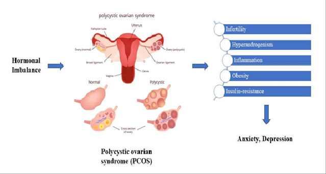 Polycystic Ovary Syndrome (PCOS) is a complex endocrine-metabolic disorder defined by hyperandrogenism, ovulatory dysfunction, and polycystic ovarian morphology. It arises from a combination of genetic predisposition, environmental factors, and hormonal imbalances, including insulin resistance and chronic inflammation. Mental health challenges, especially anxiety and depression, are significantly more common in women with PCOS, influenced by hormonal, psychological, and social factors. While current treatments manage symptoms, there remains a pressing need for comprehensive approaches that address both physiological and emotional well-being. Future research should further explore the biological links between PCOS and mental health to inform more targeted, effective therapies.