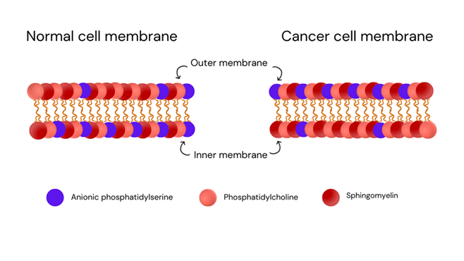 to variations in the level of exposed phosphatidylserine (PS) in the oncogenic cell membrane [26]