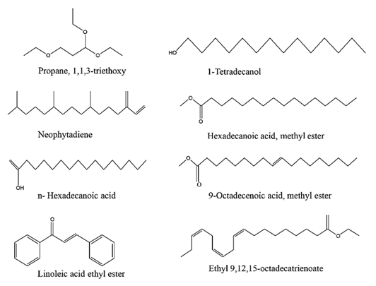 (Table 2 and Figure 2) [5,11]. Fatty acid methyl ester (FAME) analysis of the plant extract revealed that T. fragrans contains